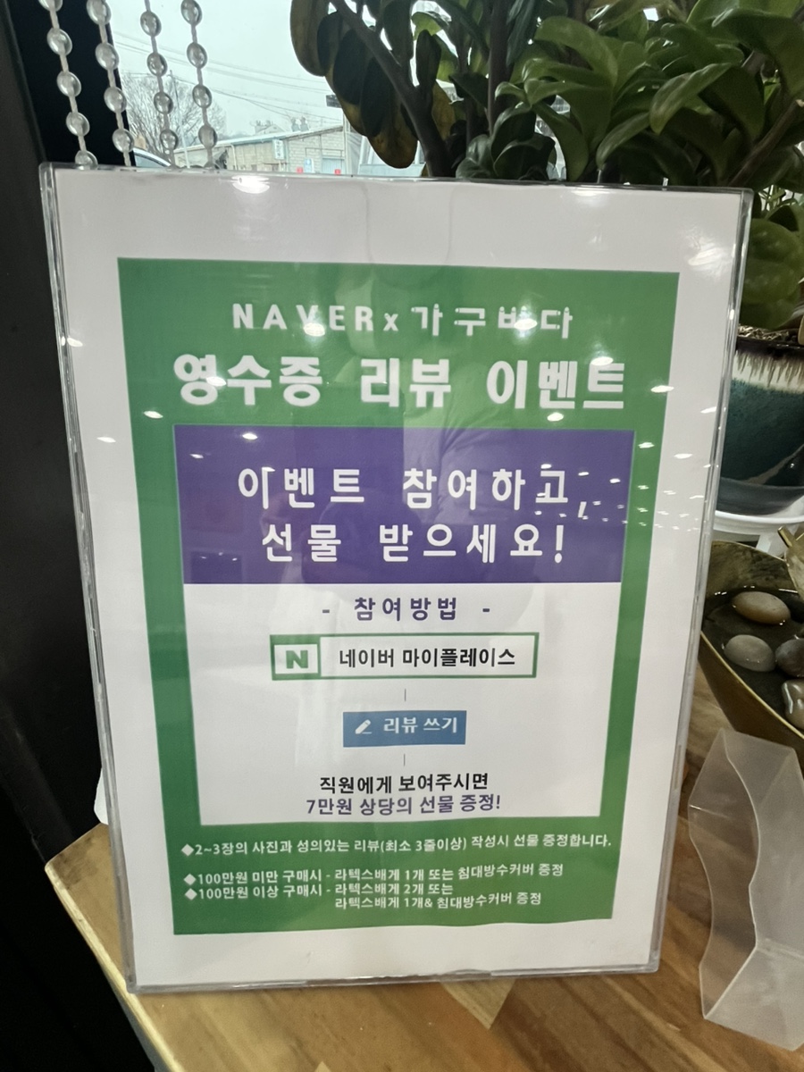 안녕하세요! 가구바다 전시장 방문 리뷰 이벤트에 참여한 고객입니다.